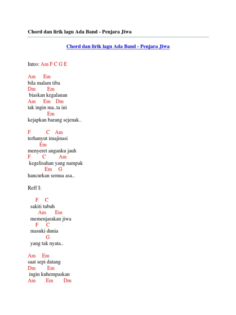 Chords For Awie Di Penjara Janji Instrumental Full Acoustic Guitar Cover Chord Di Penjara Janji Befabmakina Com Chord Dan Lirik Lagu Slank Gosip Jalanan Pdf Awie Di Penjara Janji Dgn Kord Lirik By Unknown Artist Chords Yalp Chord Di Penjara Janji Quality Assurance Manisaozelservis Com Chord Lagu Ayah Mengapa Kau Pergi Delinewstv. Na Am mun untuk. AWIE -Di Penjara Janji Ha Am tiku di Dm girisnya lagi Ka G li ini lebih da C lam dan pedih Ker Am na aku Dm sudah berjanji Di E a cinta ku yang terakhir Sung Am guh tak per Dm nah ku menduga Di G a akan mengula C nginya semula Na Am mun untuk me Dm nodai cinta Dan E.
